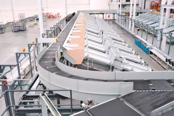 Los clasificadores horizontales de banda cruzada se caracterizan por su recorrido flexible y optimizado, con curvas que permiten superar pendientes y desniveles. Las entradas y salidas pueden organizarse de diversas maneras y optimizarse para aumentar el rendimiento del sistema. Con una distribución adecuada, es posible crear varias áreas de clasificación con un solo ciclo. El clasificador horizontal de banda cruzada también es ideal para espacios reducidos. Por ejemplo, se pueden instalar dos clasificadores con rutas idénticas, uno sobre el otro, es decir, duplicadas. Los clasificadores horizontales de banda cruzada pueden recircular mercancías que no han sido reconocidas por la tecnología de identificación o que no se han descargado porque todos los destinos estaban llenos.